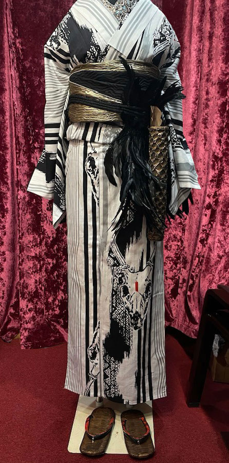 設計中有時融入江戶時代風格的俏皮與灑脫,有時也結合童話或故事世界,再搭配街頭時尚元素,將這些設計元素其匯聚於「浴衣」這一經典形式之中。